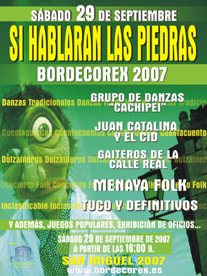 Aproximadamente a las cinco de la tarde, después de comer, comenzó la séptima edición del certamen «Si hablaran las piedras» que todos los años trae la música y danzas tradicionales. La primera actuación fue la del grupo de danzas «Los Cachipei» que desarrollaron danzas tradicionales de diferentes regiones españolas. Este grupo de danza con sede en San Lorenzo de El Escorial está formado por un numeroso grupo de danzantes de muy diversas edades.