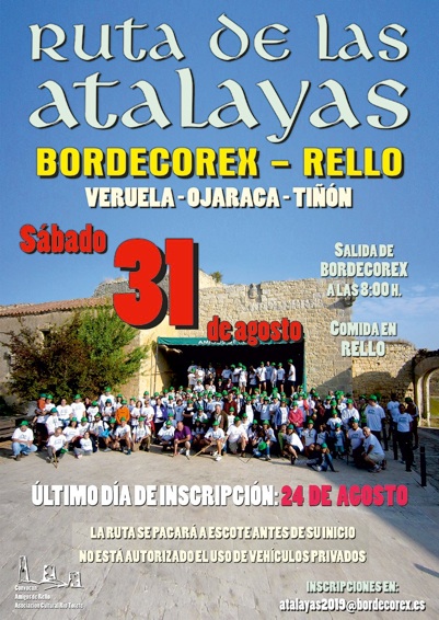 Para los que no estéis por la zona estos días y deseéis participar en la ruta también podéis inscribiros mandando un correo electrónico a: atalayas2019@bordecorex.es antes del día 24 (todas las personas que se apunten a través del correo electrónico recibirán una respuesta de confirmación).
